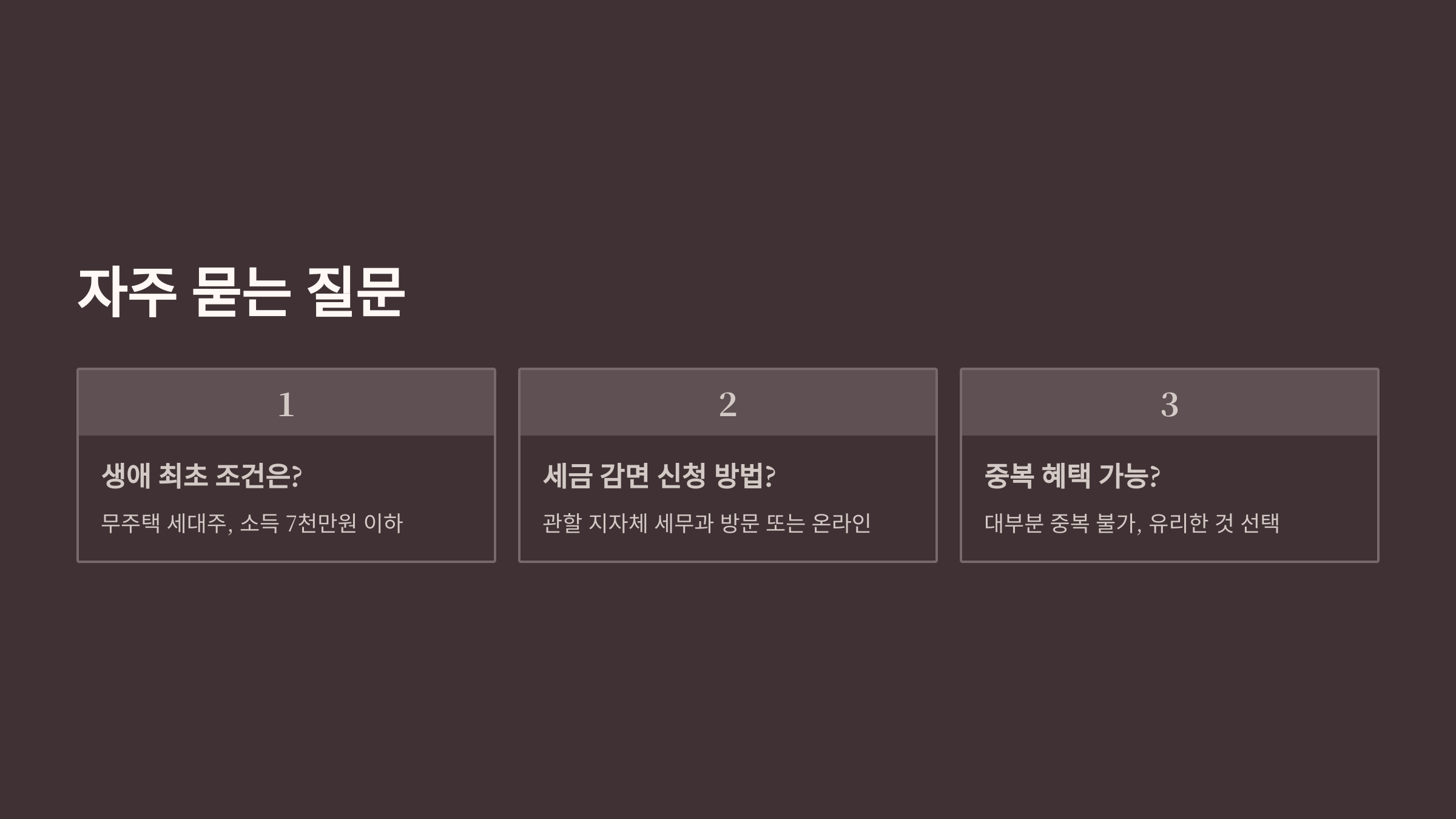 이 감면 혜택은 한 번의 신청으로 평생의 부담을 줄일 수 있는 제도예요. 단 한 번 뿐이니, 꼼꼼하게 따져보고 누락 없이 준비해보세요. 미리 챙기면 수백만 원을 아낄 수 있어요! 🎯