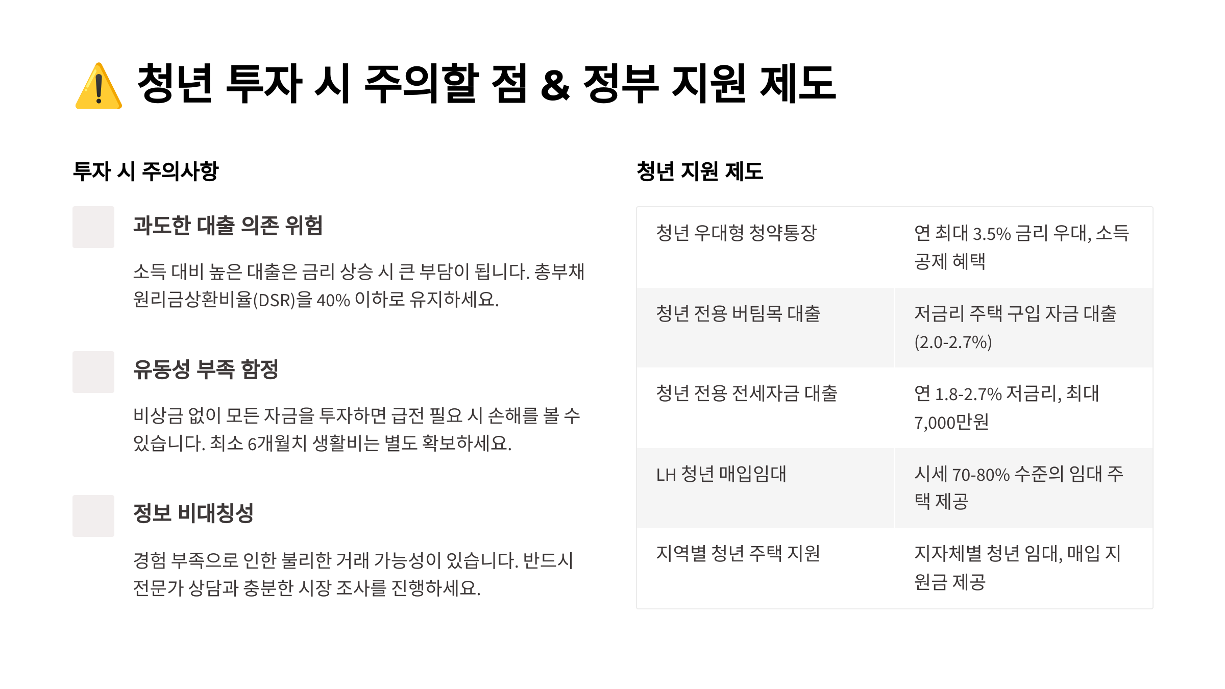 이러한 주의사항을 지키면 청년도 소액 부동산 투자로 성공적인 자산 형성이 가능해요. 투자할 때는 항상 ‘신중함’을 최우선으로 두세요! 👍