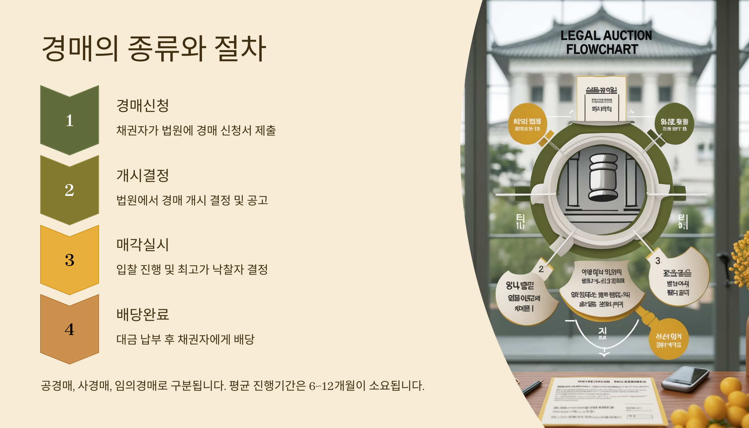 부동산경매는 쉽게 말해, 돈을 갚지 못한 채무자의 집이나 부동산을 법원이 강제로 팔아서 그 대금을 채권자에게 돌려주는 절차예요. 이 과정에서 일반인이 참여해 시세보다 저렴하게 부동산을 낙찰받을 수 있죠.
