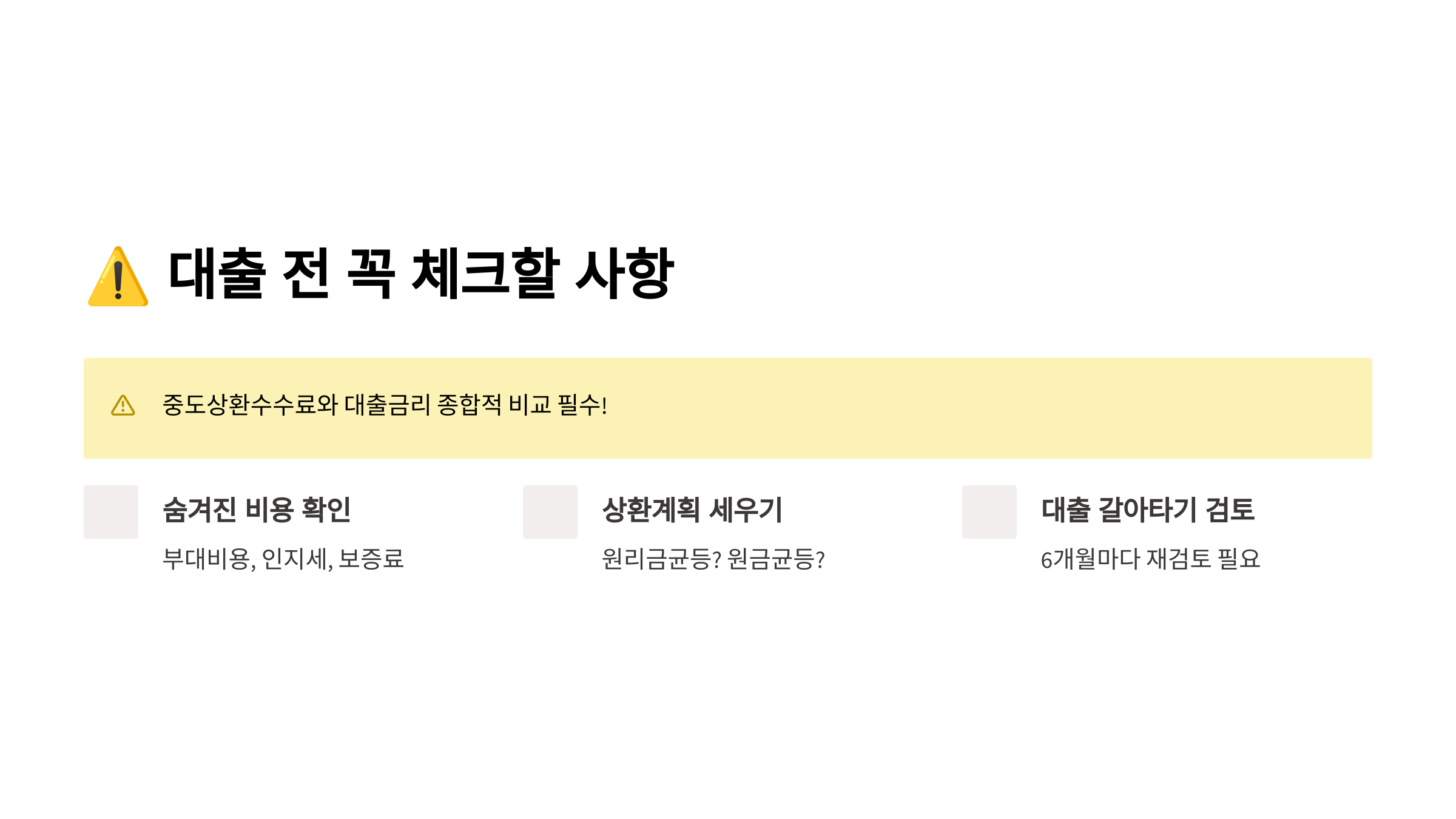 | 중도상환수수료 | 3년 이내 상환 시 수수료 있는지 확인 |