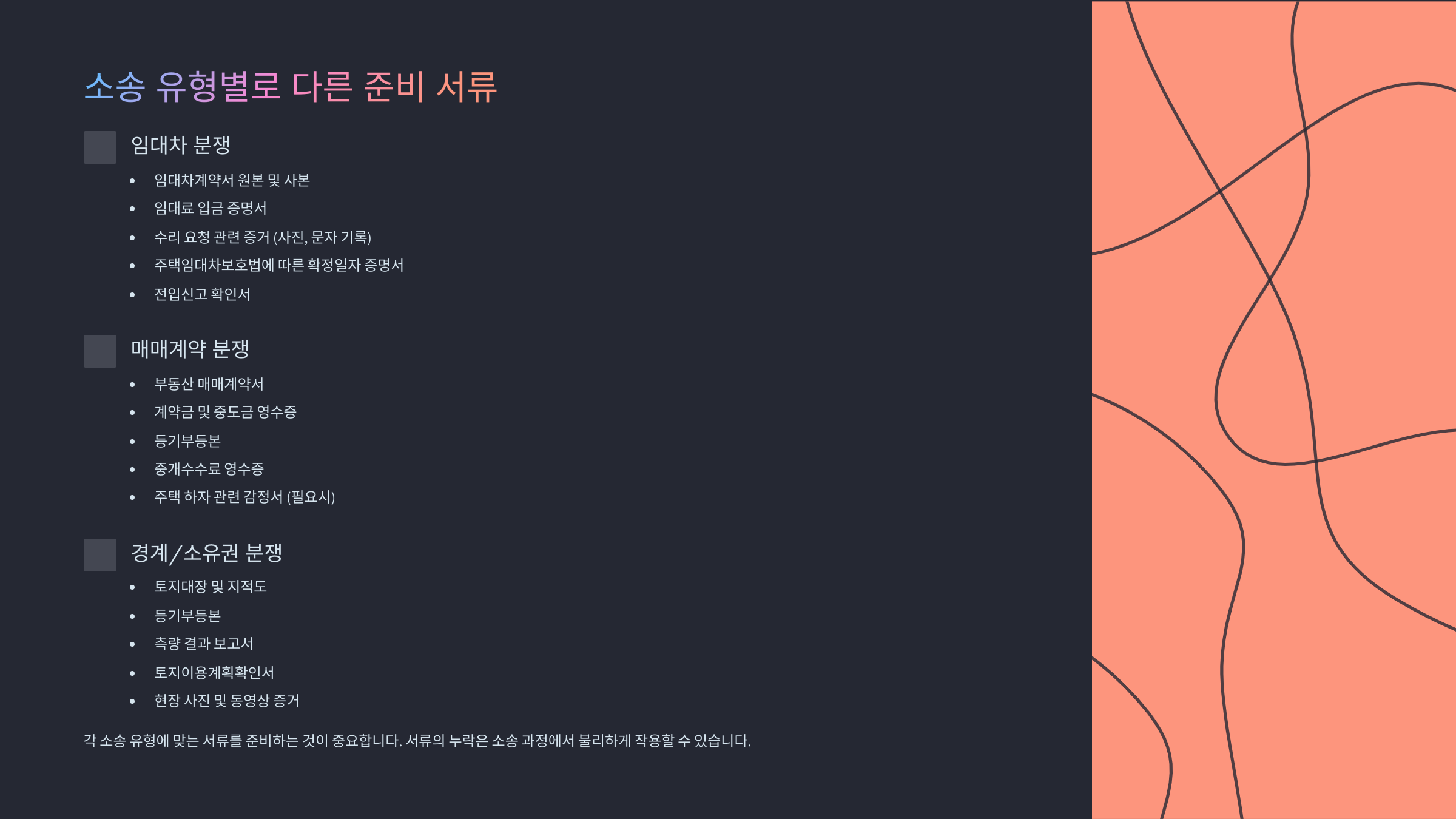 📂 소송 유형별로 다른 준비 서류