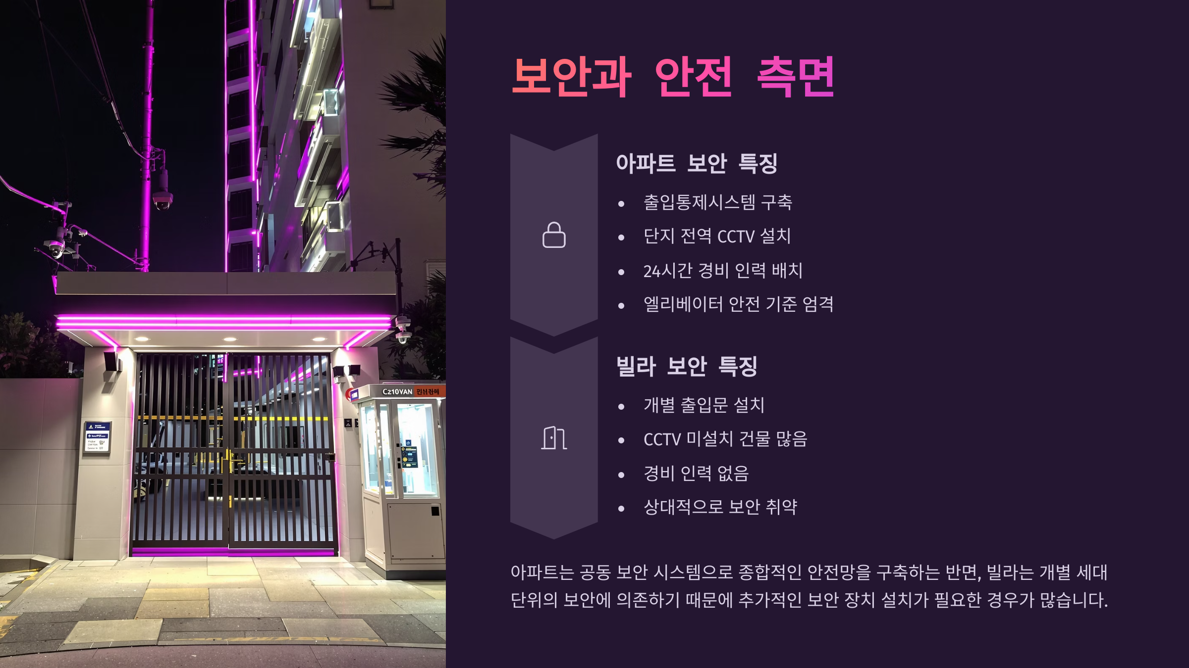 여성 단독 세대, 맞벌이 부부, 장기간 외출이 잦은 분들은 이런 보안 측면에서 확실히 아파트에 더 마음이 끌릴 수밖에 없죠. 내 집이 곧 내 요새라면, 그만큼 안전해야 마음 편히 쉴 수 있어요.
