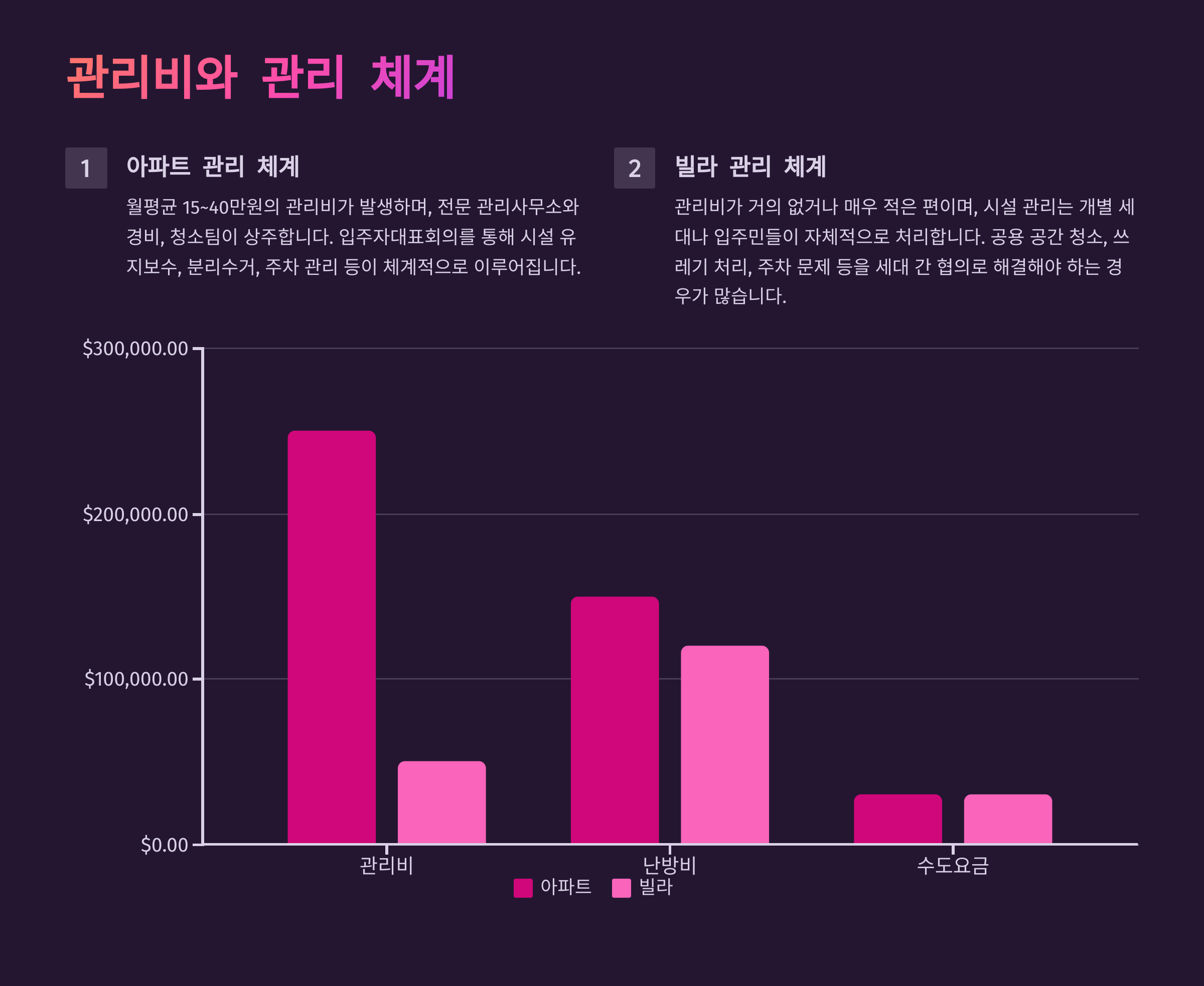 💡 관리비 및 체계 비교표