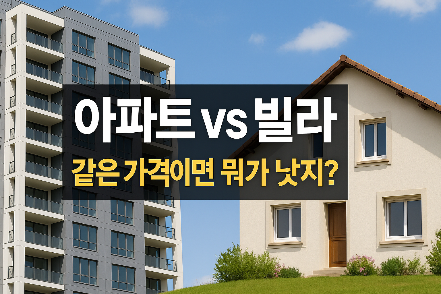 A8. 투자 가치와 안전을 원한다면 아파트, 넓은 공간과 프라이버시를 원한다면 빌라가 잘 맞아요. 내 라이프스타일을 먼저 정해보는 게 핵심이에요.
