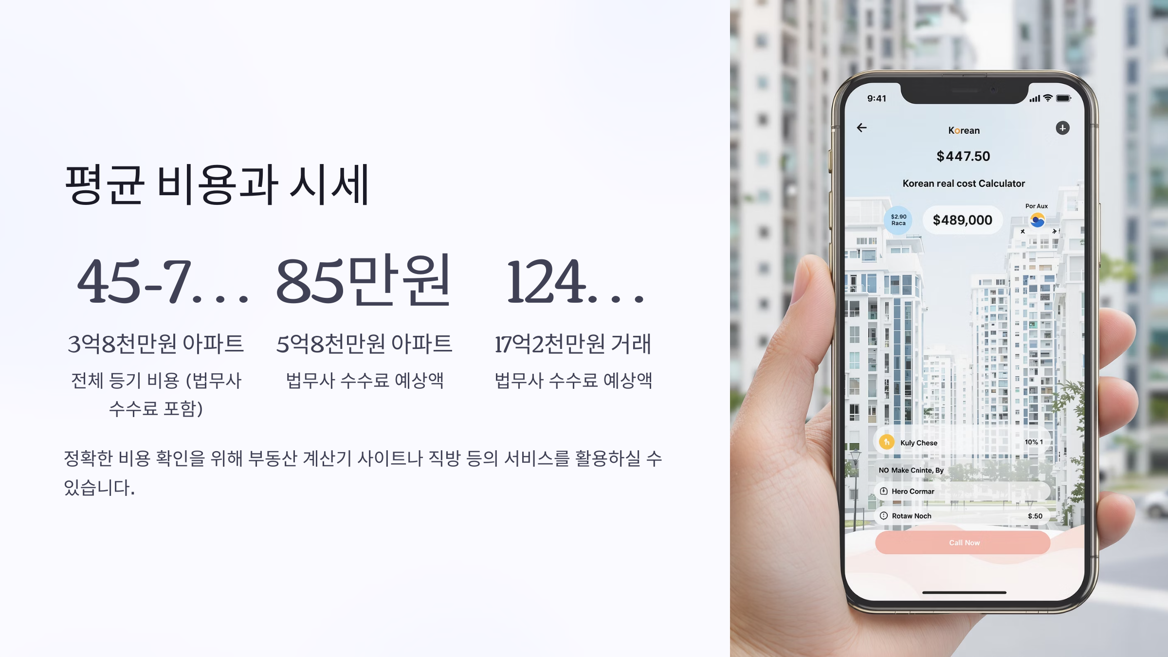 여섯 번째는 **등기비용 계산기 활용하기**예요. 온라인 부동산 플랫폼에서 등기 비용 계산기를 제공해요. 매매가 입력하면 자동으로 세금과 수수료가 나와서 예상 견적 확인이 가능하죠.