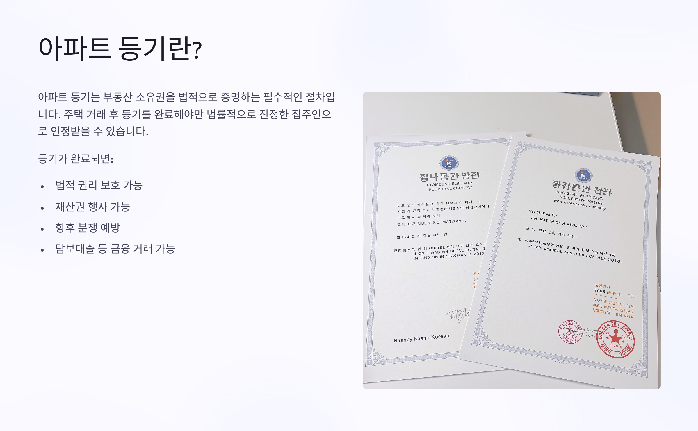 등기부 등본이라는 문서에 소유자 정보가 기록되는데, 이게 바로 나중에 팔거나 상속하거나 담보로 사용할 때 아주 중요한 근거가 돼요. 그래서 등기는 절대 빼놓을 수 없는 절차죠.