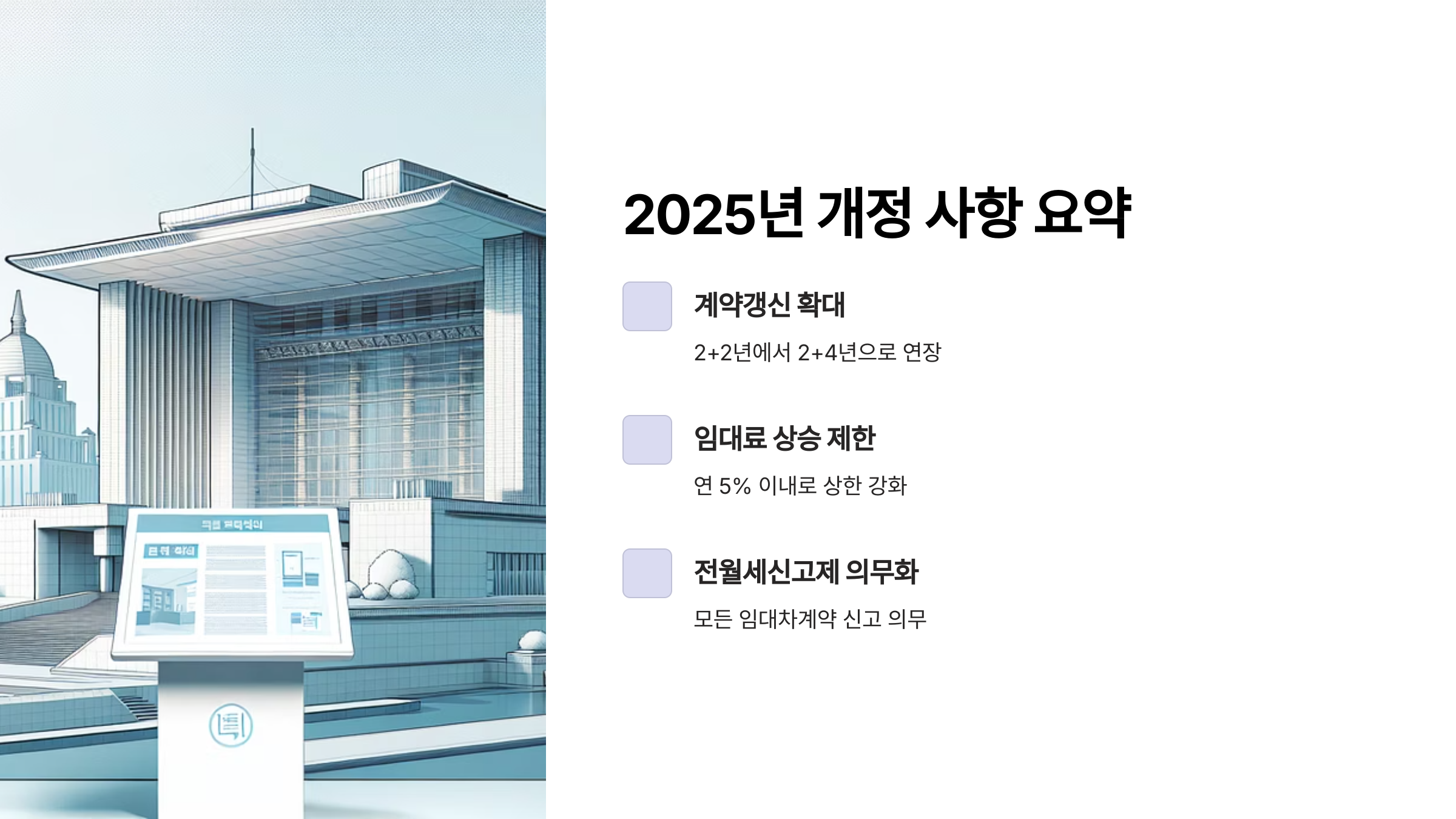 2025년의 변화는 단순한 법 개정이 아니라, 내 돈과 권리를 지킬 수 있는 기회라고 생각하면 돼요. 달라진 제도에 맞게 내 계약 절차도 바꿔야 해요!