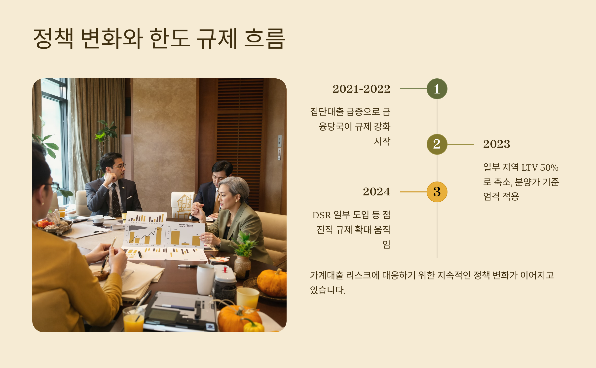 | 2025 | 실수요자 중심 한도 완화, DSR 적용 확대 |