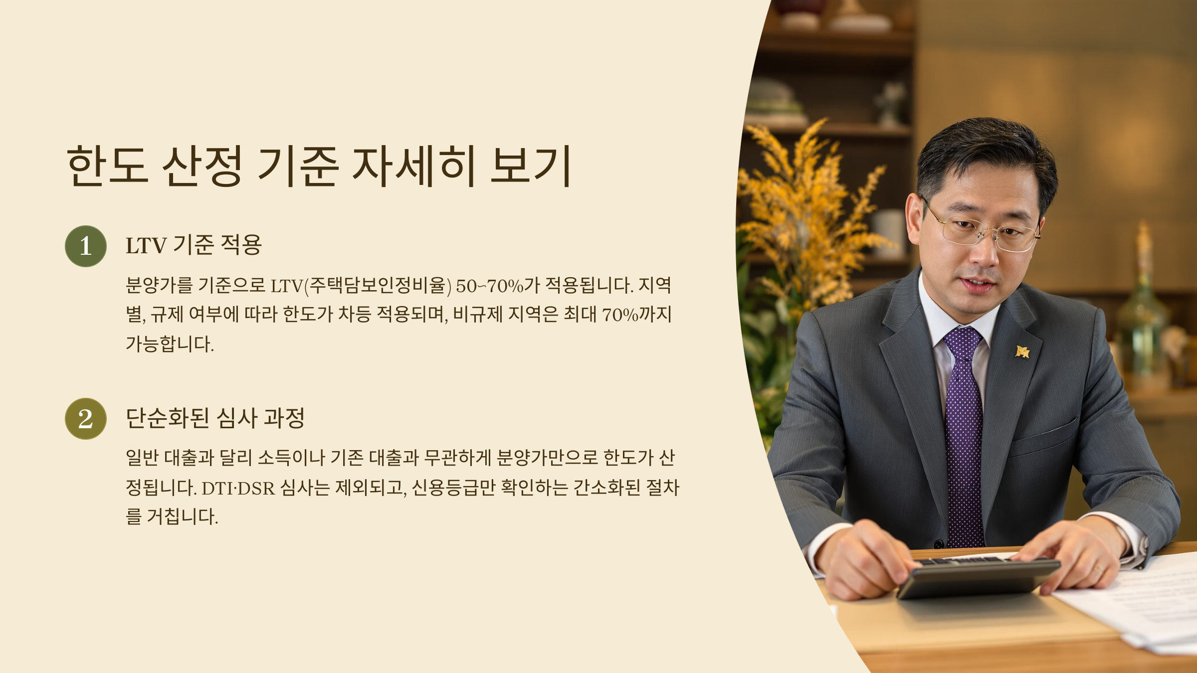 기본적으로 대출 한도는 분양가의 최대 60%까지 설정되며, 6회 분할로 지급돼요. 하지만 이 60%조차 지역에 따라, 주택의 규모에 따라, 그리고 규제지역 여부에 따라 크게 달라질 수 있어요.
