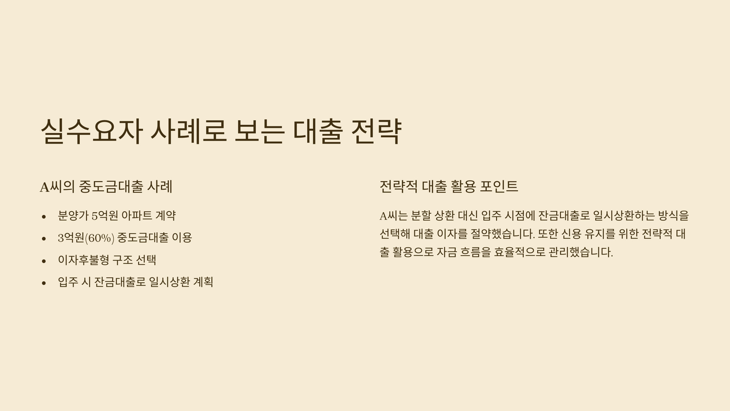 이제 실제로 중도금대출을 활용한 실수요자들의 사례를 살펴보며, 어떻게 전략적으로 접근할 수 있을지 함께 알아볼게요. 각자 조건과 상황이 다르기 때문에, 나와 유사한 사례를 통해 힌트를 얻는 것이 좋아요.