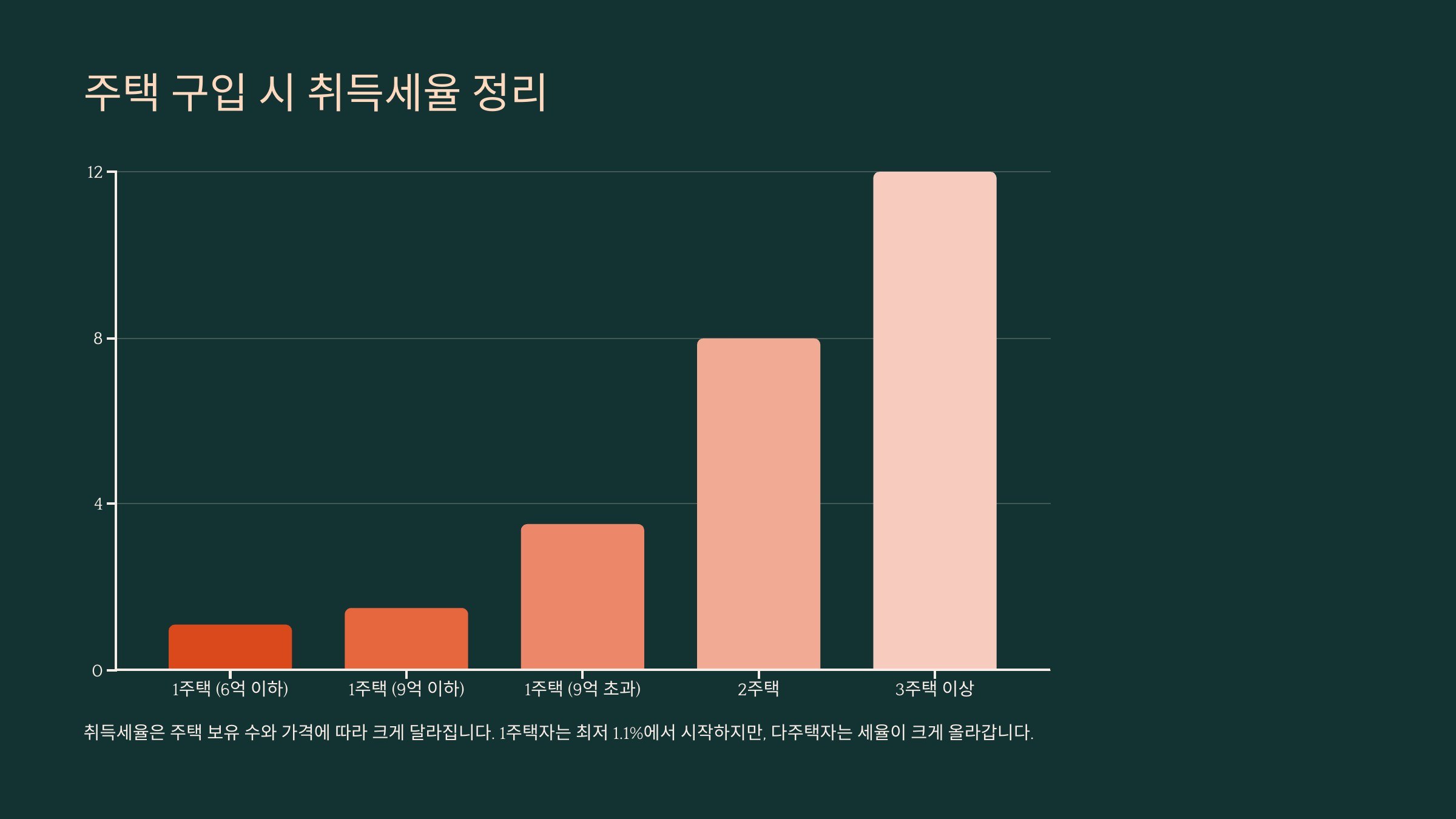 | 세율 | 1%~12% (주택 수·금액별 차등) |