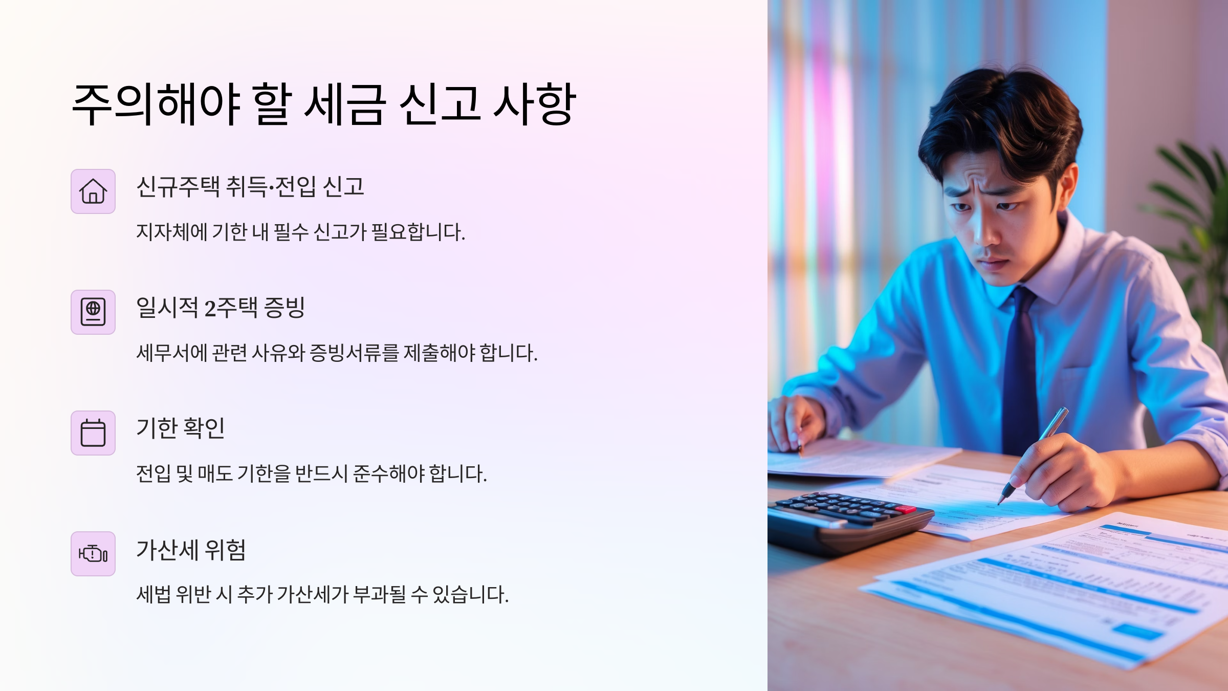 특히 조정대상지역에선 규제가 더 강력하기 때문에, 신고를 꼼꼼히 챙기는 것이 필수예요. 혹시 놓치면? 납부기한이 지난 세금뿐 아니라, 가산세까지 무섭게 따라붙는답니다. 😰