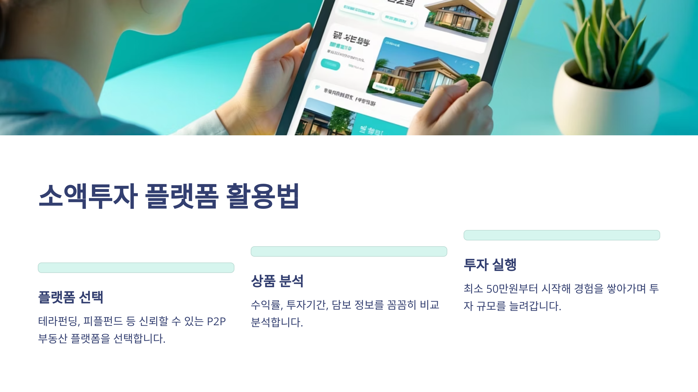 두 번째는 ‘목표 설정’이에요. 매달 배당이 목적이면 리츠가, 단기 수익을 원하면 프로젝트형 펀딩이 적합해요. 본인의 투자 목적에 따라 전략을 나누는 것이 핵심이랍니다.