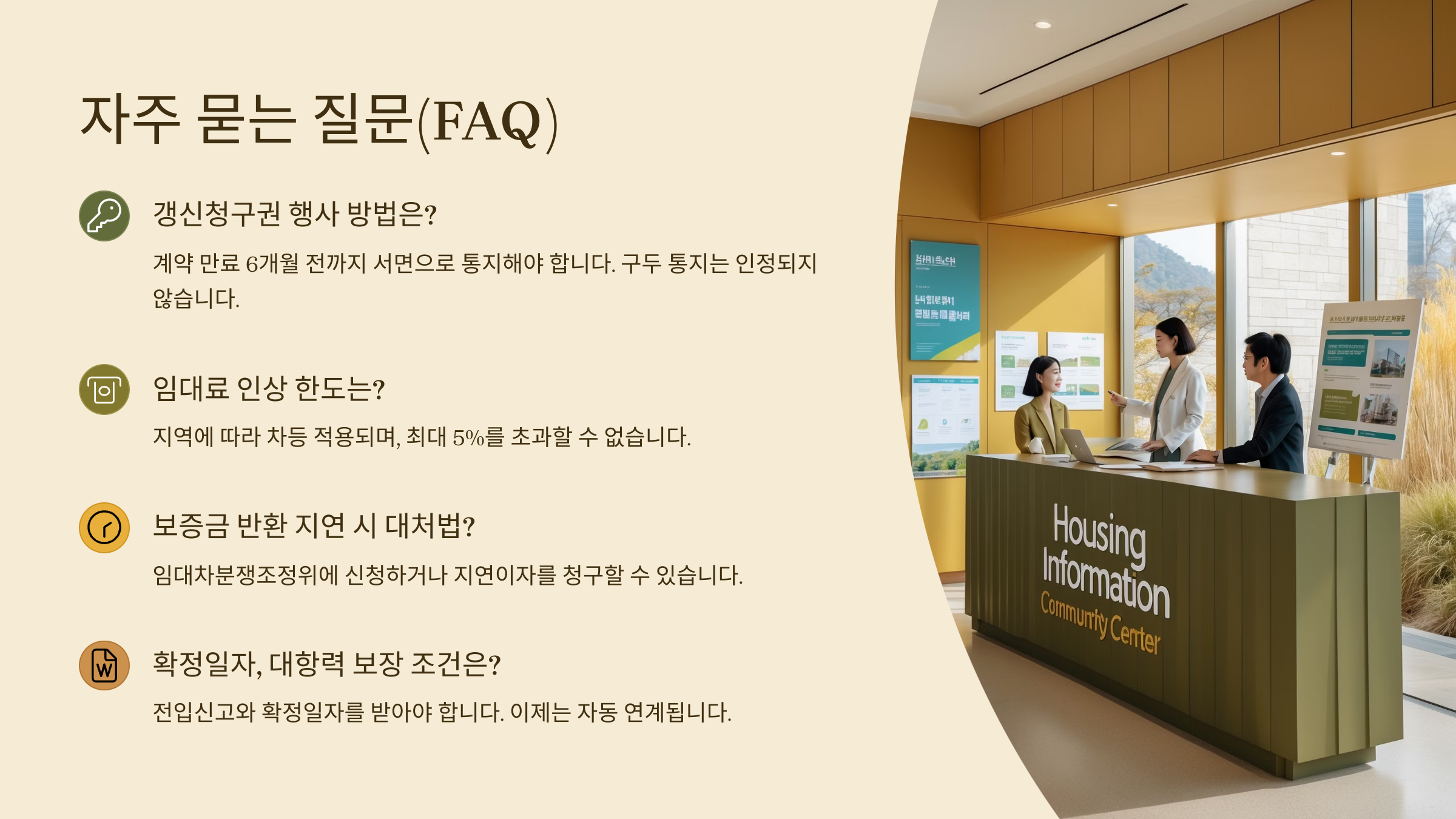 계약갱신요구권도 임차인이 주거를 안정적으로 유지할 수 있도록 보장해 주는 제도니까, 꼭 알아두길 추천해요! 주거 안정성은 정말 중요한 가치니까요.