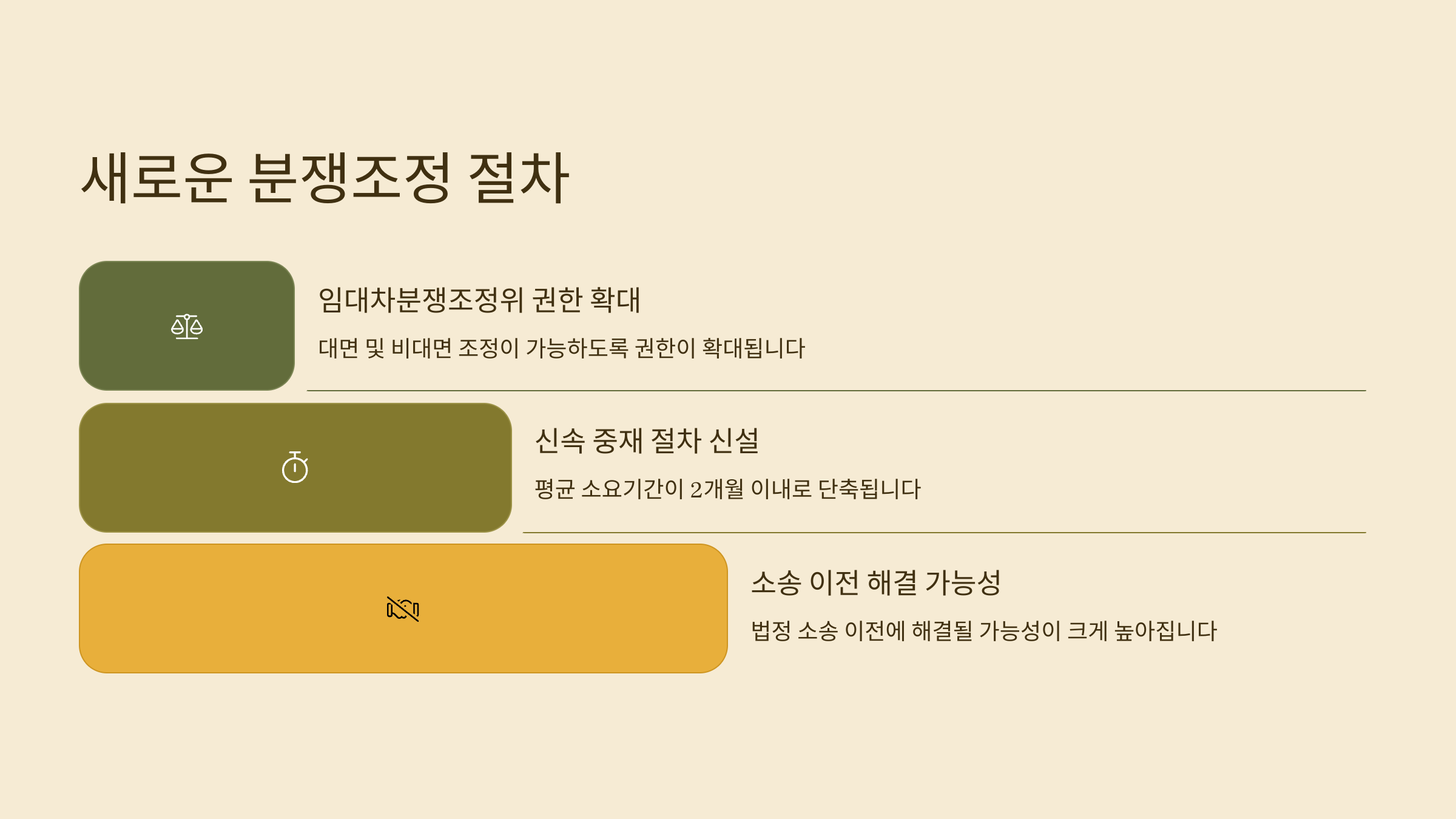 2025년 개정안에서는 임대차 분쟁을 해결하기 위한 분쟁조정 절차도 새롭게 정비됐어요. 그동안 임대차 분쟁은 복잡하고 시간도 오래 걸려서 임차인과 임대인 모두 힘들어했는데, 이번 개정으로 훨씬 간편하고 빠르게 해결할 수 있게 됐답니다.